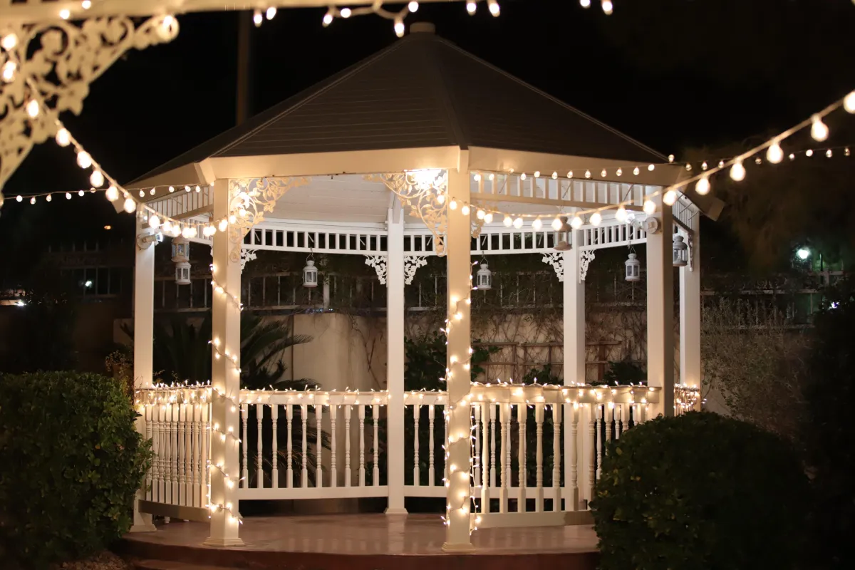 6-hour time block / Ceremony & Reception / Officiant Services / Ring & Vow Exchange / Flowers / Photography / License Filing / Custom Music Playlist / Brides Room / Prep Area / Flowers Petals / Seat Covers / Custom Gazebo Decorations / Custom Reception Decorations / Tables / Chairs / Centerpieces / Signing Book / Couples Table & Arch / Gift Table / Cake Table / Food Service Tables